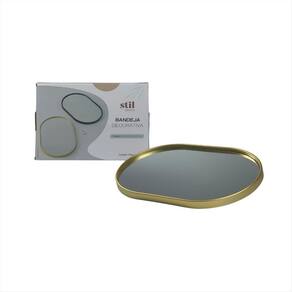 Bandeja Espelhada Decorativa Transforme sua decoração com elegância e praticidade A bandeja espelhada com acabamento dourado ou preto traz sofisticação ao ambiente, seja na sala, no hall de entrada ou no quarto. Perfeita para organizar chaves, acessórios ou pequenos objetos do dia a dia, sem perder o charme. Seu design minimalista e contemporâneo se adapta facilmente a diferentes estilos de decoração, deixando qualquer espaço mais acolhedor e estiloso. Um detalhe simples que faz toda a diferença no visual da sua casa Especificações Técnicas Bandeja Espelhada Material: Polipropileno PP de alta resistência e vidro espelhado Acabamento: Moldura dourada com bordas arredondadas Medidas C x L x A : 30,5 cm x 20,5 cm x 1,5 cm Peso aproximado: 320 g Uso recomendado: Organização de pequenos objetos como chaves, acessórios e cosméticos e decoração de ambientes modernos Imagens ilustrativas. Marca: Não Informado