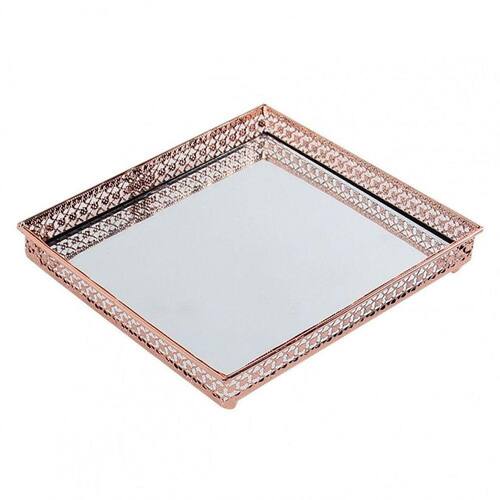 BANDEJA ESPELHADA E METAL COBRE 16,5CM X 16,5CM X 3,1CM