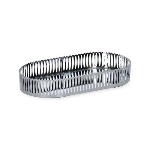 Bandeja Espelhada Oval Em Metal 26x15cm Mart Prata -