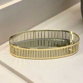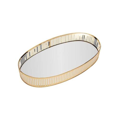 Bandeja Espelhada Oval Em Metal Berlin 26x13cm Lyor Dourado -