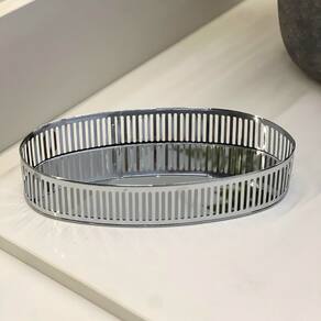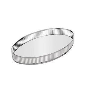Bandeja Espelhada Oval Em Metal Berlin 26x13cm Lyor Prata -