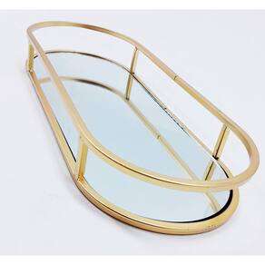 1 Bandeja Espelhada Oval Metal Dourado 30x12cm;