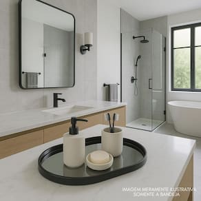 Bandeja Espelhada Decorativa Transforme sua decoração com elegância e praticidade A bandeja espelhada com acabamento dourado ou preto traz sofisticação ao ambiente, seja na sala, no hall de entrada ou no quarto. Perfeita para organizar chaves, acessórios ou pequenos objetos do dia a dia, sem perder o charme. Seu design minimalista e contemporâneo se adapta facilmente a diferentes estilos de decoração, deixando qualquer espaço mais acolhedor e estiloso. Um detalhe simples que faz toda a diferença no visual da sua casa Especificações Técnicas Bandeja Espelhada Material: Polipropileno PP de alta resistência e vidro espelhado Acabamento: Moldura dourada com bordas arredondadas Medidas C x L x A : 30,5 cm x 20,5 cm x 1,5 cm Peso aproximado: 320 g Uso recomendado: Organização de pequenos objetos como chaves, acessórios e cosméticos e decoração de ambientes modernos Imagens ilustrativas. Marca: Não Informado