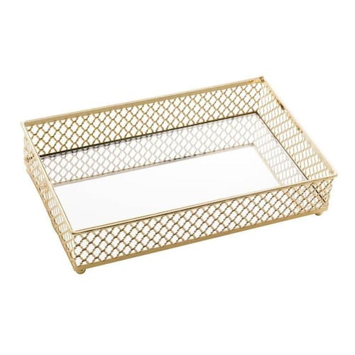 Bandeja Espelhada Retangular Em Metal Barcelona 21x13cm Lyor Dourado -