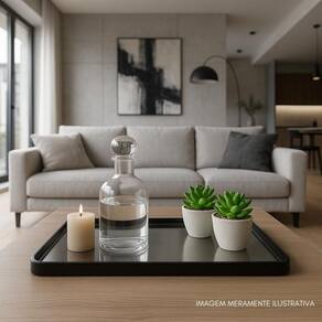 Bandeja Espelhada Decorativa Transforme sua decoração com elegância e praticidade A bandeja espelhada com acabamento dourado traz sofisticação ao ambiente, seja na sala, no hall de entrada ou no quarto. Além de destacar os vasinhos modernos que acompanham, ela também é funcional: perfeita para organizar chaves, acessórios ou pequenos objetos do dia a dia, sem perder o charme. Seu design minimalista e contemporâneo se adapta facilmente a diferentes estilos de decoração, deixando qualquer espaço mais acolhedor e estiloso. Um detalhe simples que faz toda a diferença no visual da sua casa Especificações Técnicas Bandeja Espelhada Material: Polipropileno PP de alta resistência e vidro espelhado Acabamento: Moldura dourada com bordas arredondadas Medidas C x L x A : 30,5 cm x 20,5 cm x 1,5 cm Peso aproximado: 320 g Uso recomendado: Organização de pequenos objetos como chaves, acessórios e cosméticos e decoração de ambientes modernos Adorno - Vasinhos decorativos Material do corpo: Porcelana de acabamento fosco Material de preenchimento: Pedra decorativa natural Material da planta artificial: Policloreto de Vinila PVC e Poliestireno PS de alta durabilidade Medidas A x L : 5 cm x 8 cm cada unidade Peso aproximado cada adorno : 80 g Quantidade: 2 vasinhos inclusos Imagens ilustrativas. Marca: Não Informado