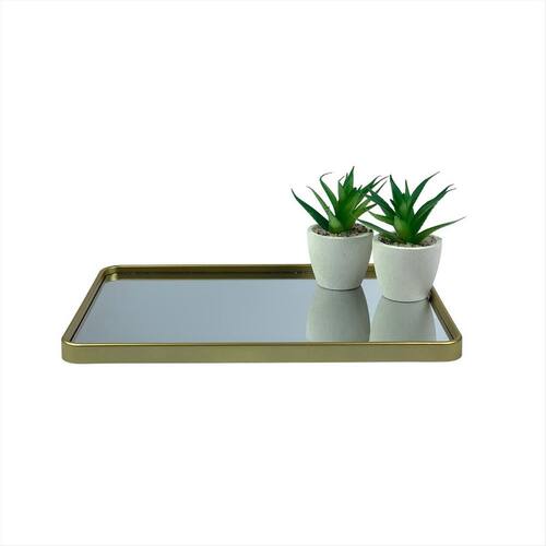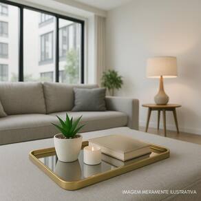 Bandeja Espelhada Decorativa Transforme sua decoração com elegância e praticidade A bandeja espelhada com acabamento dourado traz sofisticação ao ambiente, seja na sala, no hall de entrada ou no quarto. Além de destacar os vasinhos modernos que acompanham, ela também é funcional: perfeita para organizar chaves, acessórios ou pequenos objetos do dia a dia, sem perder o charme. Seu design minimalista e contemporâneo se adapta facilmente a diferentes estilos de decoração, deixando qualquer espaço mais acolhedor e estiloso. Um detalhe simples que faz toda a diferença no visual da sua casa Especificações Técnicas Bandeja Espelhada Material: Polipropileno PP de alta resistência e vidro espelhado Acabamento: Moldura dourada com bordas arredondadas Medidas C x L x A : 30,5 cm x 20,5 cm x 1,5 cm Peso aproximado: 320 g Uso recomendado: Organização de pequenos objetos como chaves, acessórios e cosméticos e decoração de ambientes modernos Adorno - Vasinhos decorativos Material do corpo: Porcelana de acabamento fosco Material de preenchimento: Pedra decorativa natural Material da planta artificial: Policloreto de Vinila PVC e Poliestireno PS de alta durabilidade Medidas A x L : 5 cm x 8 cm cada unidade Peso aproximado cada adorno : 80 g Quantidade: 2 vasinhos inclusos Imagens ilustrativas. Marca: Não Informado