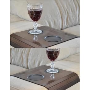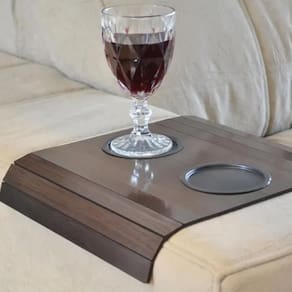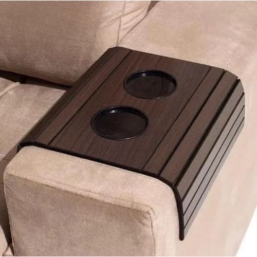 Bandeja Esteira para Braço de Sofá Cor Tabaco com Porta Copos Descrição Contém: 01 bandeja Esteira para Braço de Sofá Cor Tabaco com Porta Copos