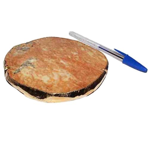 Bandeja de Feldspato natural com 13 centimetros com borda dourada ideal para petisqueira e uma otima decoração Parte superior polida