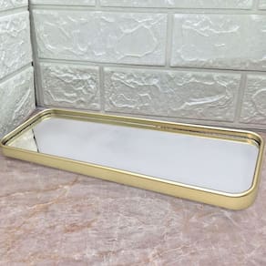 Bandeja Fina Espelhada Decorativa Dourada Sala Lavabo 30cm