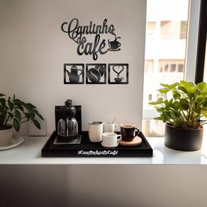 Bandeja + frase cantinho do café decoração área do café Cor: branco Bandeja cantinho do café - decoração linha premium