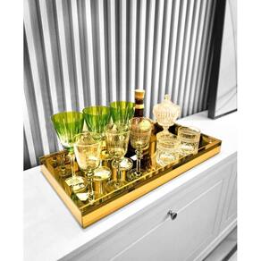 Bandeja espelhada traz consigo toda elegância do espelho dourado para a sua casa. Identidade única, sofisticação e autenticidade. Utilizada para decorar; Aparador, Áreas de lazer, Cozinha, Varandas, Salas, Centros de mesa e Barzinhos.