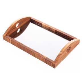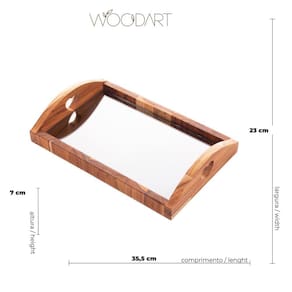 BANDEJA MADEIRA C/ESPELHO CORACAO TECA BLACK 36x23x7cm