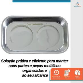 Conheça a Bandeja Magnética Retangular da Starfer, uma solução prática e eficiente para manter suas partes e peças metálicas organizadas e ao seu alcance. Com uma cavidade interna circular dupla, essa bandeja é ideal para profissionais de oficinas mecânicas, eletricistas, montadores e hobbistas que buscam um suporte confiável para evitar a perda de pequenos itens metálicos, como parafusos e porcas.