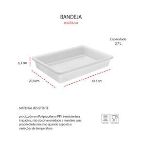 Bandeja de plastico multiuso. A bandeja foi produzida em polipropileno resistente, nao absorve umidade, atoxico e livre de Bisfenol A. Ideal para manusear e organizar alimentos na cozinha.