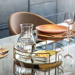 A Bandeja Multiuso Hara Luiza Redonda é um produto estruturado em aço inox com base espelhada e laterais vazadas. Possui matéria-prima de alta durabilidade e resistência. É um produto criado especialmente para aqueles que não abrem mão do design, charme e da beleza dos detalhes em seu dia a dia.