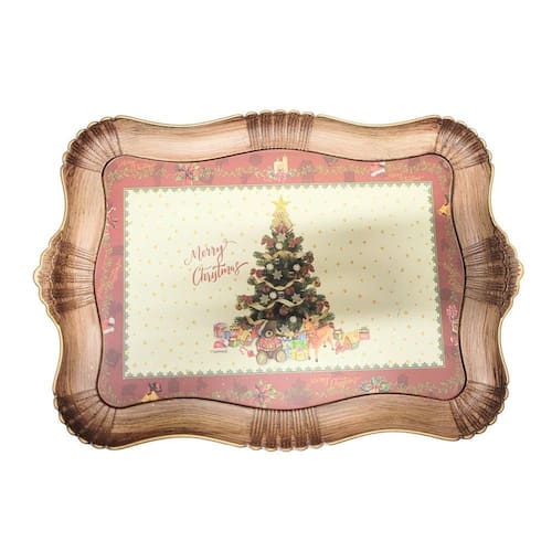 Bandeja Natal Retangular Estampa Árvore de Natal Rústica 42cm