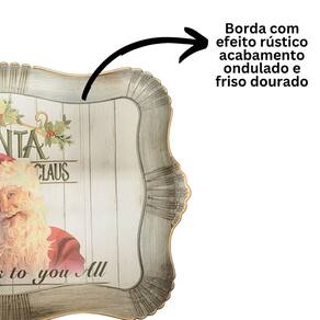 Bandeja Natal Retangular Estampa Papai Noel Rústica 42cm