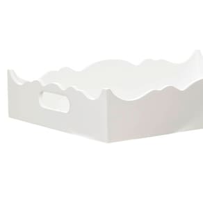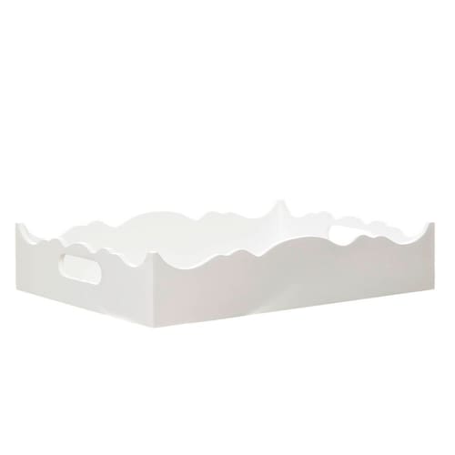 Organizese com essa bandeja confeccionada, especialmente, para levar praticidade e versatilidade para as mamães e com muito estilo. Afinal toda a magia da ambientação se manifesta através desses toques decorativos, que não podemos abrir mão Dados Técnicos Bandeja em madeira MDF com pintura laqueada ondulada branca. Medidas Largura: 26 cm Comprimento: 35 cm Altura: 7 cm Ean: 7898659184942