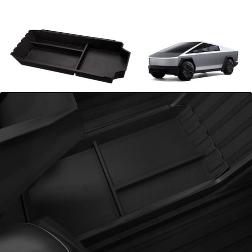 Motrobe Bandeja organizadora de console central inferior Tesla Cybertruck 2024 2025, feita de material TPE durável para um ajuste preciso e integração perfeita com o interior do seu Cybertruck. Com três compartimentos de tamanhos variados, maximiza a eficiência de armazenamento, mantendo os itens essenciais acessíveis e organizados. - Ajuste preciso: sob medida usando os esquemas autênticos do Cybertruck 2024 2025 da Tesla, esta bandeja organizadora de console central Cybertruck integra-se perfeitamente como equipamento Autêntico. Preserve o design icônico de listras verticais enquanto adiciona armazenamento funcional — sem porta-copos volumosos bloqueando o acesso ao console. - Armazenamento maximizado: a bandeja de console central inferior da Cybertruck possui três compartimentos cuidadosamente trabalhados de diferentes tamanhos, oferecendo muito espaço para organizar vários itens perfeitamente. Este design maximiza a capacidade de armazenamento, elimina a bagunça e mantém seu veículo organizado e organizado, garantindo fácil acesso a alimentos, copos, guarda-chuvas, óculos de sol, ferramentas e outros itens essenciais. - Cabine sem ruído: a base TPE testada em laboratório reduz o ruído do item em 80% em comparação com as bandejas ABS. O design patenteado do sulco prende os itens no lugar. Melhora a estética enquanto reduz o ruído e o movimento, oferece armazenamento seguro para itens essenciais, proporcionando um passeio mais suave. - Construído para durar: Feito de material TPE durável, é robusto, resistente ao desgaste, inodoro e fácil de limpar. Evita que itens essenciais do dia a dia se movam e garante uma experiência de condução mais silenciosa. Esta caixa de armazenamento Tesla Cybertruck também protege seus itens contra arranhões ou danos. - Fácil instalação e limpeza: aproveite a configuração sem complicações simplesmente inserindo a bandeja na ranhura para uso imediato, sem necessidade de ferramentas. A superfície à prova de derramamento limpa instantaneamente — sem desmontar os porta-copos Garante manutenção sem esforço para um interior de veículo sempre limpo e fresco.