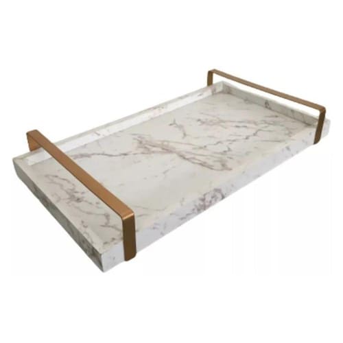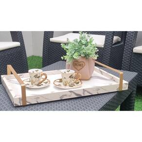 Bandeja para Café / Bandeja para Bebidas Marmorizada Luxo A Bandeja Decorativa para café ou para bebidas, leva luxo conforto e sofisticação para seu lar.Seu tamanho é sufuciente para acondicionar diversos ítens, facilitando e organizando o dia a dia.Pode ser utilizada sobre o aparador, mesa de centro, rack, armários, cristaleiras ou em algum movel que necessite de um toque de sofisticação e elegância.A bandeja para bebidas ou café também pode ser utilizada como uma linda peça decorativa, ela possui duas alças na cor Gold/Rosê.Solte a sua criatividade para decorar seu ambiente e se prepare para receber muitos elogios pelo seu bom gosto em adquirir essa linda bandeja decorativa marmorizada. Marca: Gv Móveis