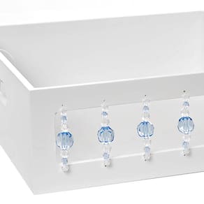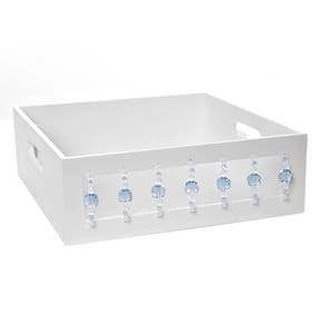 Organizese com essa bandeja confeccionada, especialmente, para levar praticidade e versatilidade para as mamães e com muito estilo. Afinal toda a magia da ambientação se manifesta através desses toques decorativos, que não podemos abrir mão Dados TécnicosBandeja em madeira MDF, pintura laqueada e decoração em acrílico. MedidasLargura: 28 cmComprimento: 28 cmAltura: 9,5 cm
