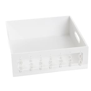 Organizese com essa bandeja confeccionada, especialmente, para levar praticidade e versatilidade para as mamães e com muito estilo. Afinal toda a magia da ambientação se manifesta através desses toques decorativos, que não podemos abrir mão Dados Técnicos Bandeja em madeira MDF, pintura laqueada e decoração em acrílico. Medidas Largura: 28 cm Comprimento: 28 cm Altura: 9,5 cm