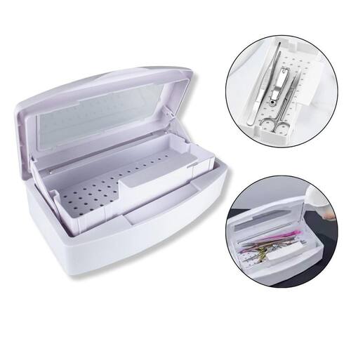 O esterilizador de instrumentos, utilizado em salões de beleza por manicures e designers de sobrancelha. Possui um design com uma tampa com visor transparente e uma bandeja removível perfurada interna, permitindo a circulação do agente esterilizante. Seu uso é indispensável para esterilização de instrumentos como pinças, alicates, lâminas e tesouras, pois reduz a contaminação cruzada ao eliminar microrganismos, servindo como manutenção da higiene e segurança em ambientes profissionais de estética e saúde. esse equipamento ajuda a garantir que os instrumentos estejam devidamente higienizados antes do uso em clientes. Uma das vantagens de uso é prolongar a vida útil dos instrumentos ao evitar corrosão e danos. essencial para profissionais que trabalham com instrumentos reutilizáveis, garantindo a saúde e segurança dos clientes e usuários.