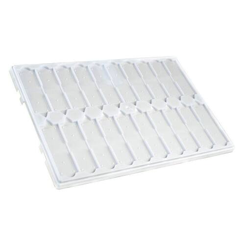 Bandeja moldada em plástico resistente com divisões numeradas sem tampa utilizada no manuseio transporte e auxílio na leitura de lâminas.