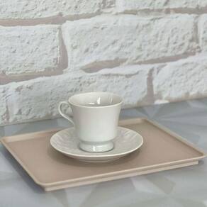 Bandeja Plástica para Servir 27x22cm Restaurante Refeitório Ou Flow Retangular Bege.