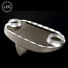 Transforme seu Spa INTEX em um espaço único, completando-o com nossa linha de acessórios para Spa INTEX. Com esta bandeja para bebidas equipada com luzes LED, você transformará seus momentos no Spa em algo exclusivo. Desfrute de momentos relaxantes com sua família e amigos enquanto aprecia sua bebida favorita. Além disso, as luzes LED embutidas proporcionam uma atmosfera especial durante o entardecer ou à noite. E não para por aí! A nova Bandeja porta copos INTEX Spa inclui um suporte para celular ou tablet, permitindo que você desfrute ainda mais de seus momentos de relaxamento.