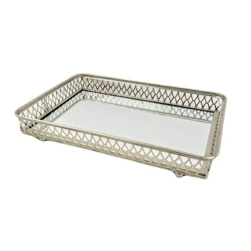 Bandeja Prata 5x30x20cm Com Espelho Em Metal Retangular Vem decorar, seja INIGUAL Uso: as bandejas tem a função não somente de servir, como também de decorar ambientes como salas e banheiros. Confira essa linda bandeja feita em ferro, rica em detalhes. Elas dão elegância ao seu ambiente e seus objetos estarão sempre bem organizados MEDIDAS: Altura:5,0cm / Largura: 30,0cm / Profundidade: 20,0cm / Peso: 725g CONTEÚDO DA EMBALAGEM:1 Bandeja MATERIAL: Metal e espelho Cor: prata ATENÇÃO OBS. As folhagens verdes e o vaso são meramente ilustrativos, não estão inclusos no anúncio.