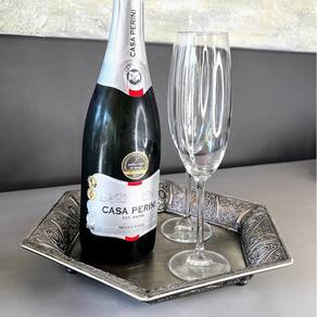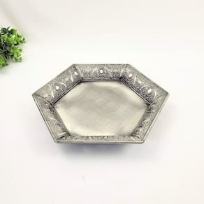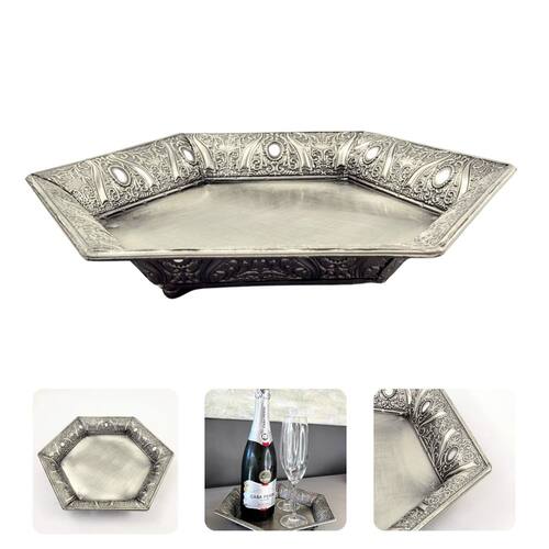 Bandeja Prata Decorativa Hexagonal 30cm Decoração P Bandeja em Metal Prateada Dê um Toque de Luxo à Sua Decoração com Nossa Bandeja em Metal Prata - Compre Agora