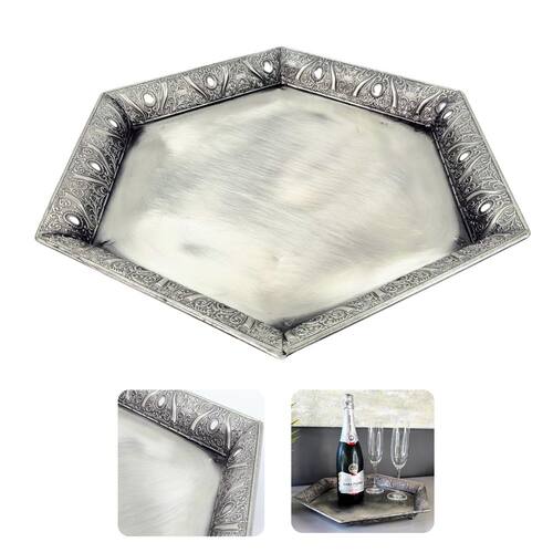 Bandeja Prata Decorativa Hexagonal 45Cm Decoração G