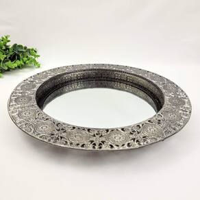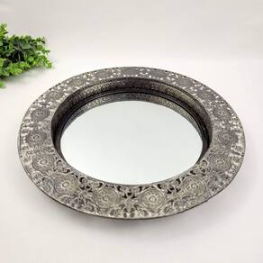 Bandeja Prata Redonda Metal Com Espelho 35cm M as bandejas tem a função não somente de servir, como também de decorar ambientes como salas e banheiros. Confira essa linda bandeja feita em metal, rica em detalhes, e com espelho. Elas dão elegância ao seu ambiente e seus objetos estarão sempre bem organizados Transforme a sua decoração utilizando bandejas.