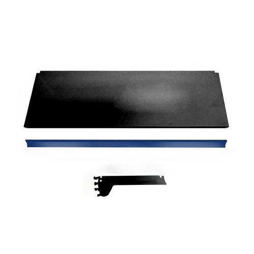 Bandeja Prateleira Ponta 30x73 para Gôndolas New Plus Preto com Porta Etiqueta Azul - SA Gôndolas