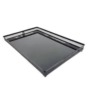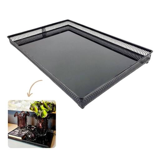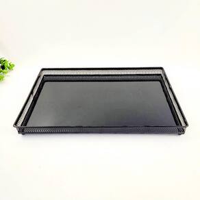 Bandeja Preta Italiana Retagular 45x30x5cm Decoração Bandeja Preta em Metal com Vidro Preto Adicione Sofisticação ao Seu Espaço com Nossa Bandeja Preta em Metal com Vidro Preto - Compre Agora