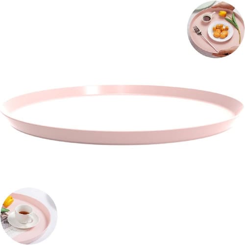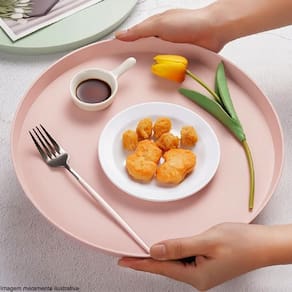 Garantia: 90 dias / Peso: 138g / Cor predominante: rosa himalaia / Referência: 403110049; Dimensões: 28cm (D) x 1,7cm (A); Conteúdo: 1 bandeja redonda; Material: polipropileno.