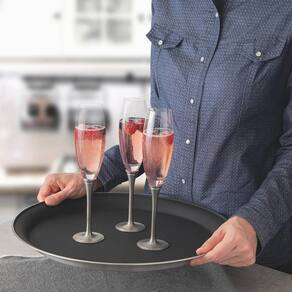 Bandeja Redonda Antiderrapante Garçom Profissional 40cm Tramontina Service Aço Inox Preto Bares Rastaurantes Hoteis