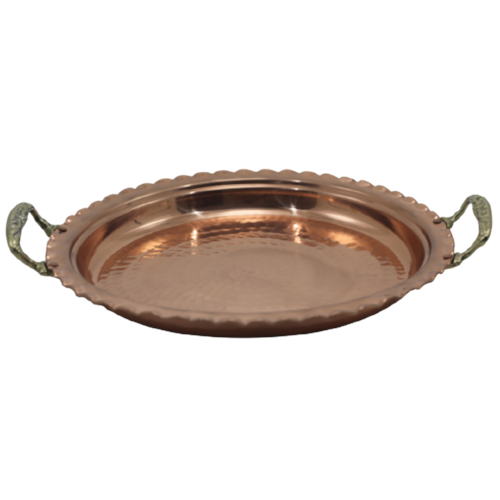 Bandeja Redonda Cobre Puro com Alças em Liga de Bronze 43cm