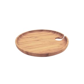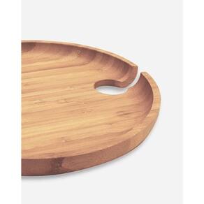 Nossa bandeja redonda é toda produzida em bambu, material resistente, com propriedades antibacterianas naturais e, além de muito prática e versátil, conta com um design arredondado contemporâneo que garante muito charme ao seu evento, sendo ele de manhã, de tarde ou de noite. A bandeja possui uma pequena abertura para que seja possível apoiar a sua taça sem o perigo dela virar e acabar causando pequenos acidentes.