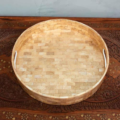 Bandeja Redonda de Madrepérola 30cm Cor Bronze Bandeja Redonda de Madrepérola 30cm Cor Bronze