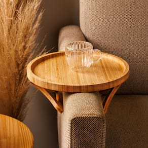 Bandeja Redonda Dobrável Para Braço De Sofá Lyor 25Cm Bambu