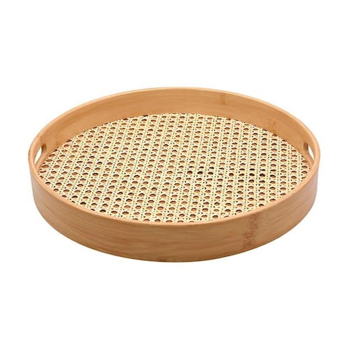 Bandeja Redonda em Bambu com Palha Indiana Medidas: Diâmetro: 35,5 cm x Altura: 5 cm Item decorativo e funcional, pode ser usado na cozinha para organizar potes e utensílios, na decoração é até mesmo como quadro e também para servir.O detalhe da palha da um toque moderno e sofisticado ao ambiente deixando seu lar ainda mais atraente e aconchegante.