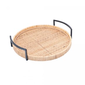 Bandeja Redonda Em Fibra Natural Com Alça Bali Wolff 37,5x35cm -