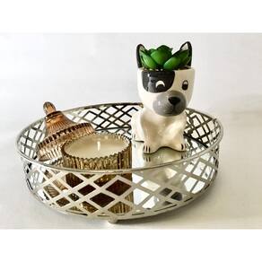 Contém 1 Bandeja Redonda Prata espelhada Diâmetro 20,5 x Altura 5cm Cor : Prata Tamanho: Diâmetro 20,5cm x Altura 5cm Material : Metal e espelho A bandeja é uma peça muito prática e útil para ter em casa, podendo ser usada para decorar ou para servir. Uma ótima opção é a bandeja, que se encaixa em qualquer cenário. Com essa linda, moderna e delicada bandeja Redonda Prata espelhada com detalhes vazados você deixará Ainda mais bonito, delicado e charmoso seu lavabo, banheiro, quarto, sala, escritório ou hall. Você vai deixar seu ambiente mais charmoso e delicado Atenção: Limpar as peças com pano limpo e seco, não molhar Não acompanha enfeites decorativos. Cuidados: Limpar com pano seco e não passar produtos químicos e abrasivos. Atenção: Podem conter fotos com outras peças decorativas, como sugestão de uso e decoração, vendidas separadamente ou somente ilustrativa. Ean: 7908175202836