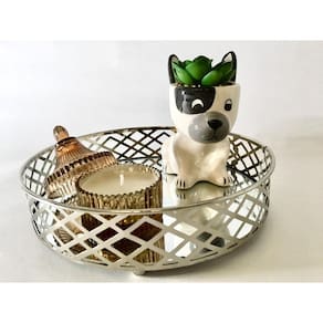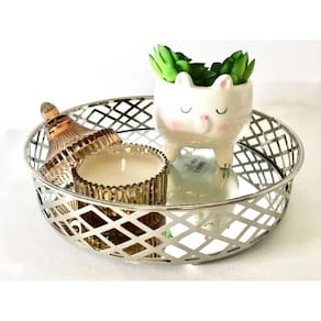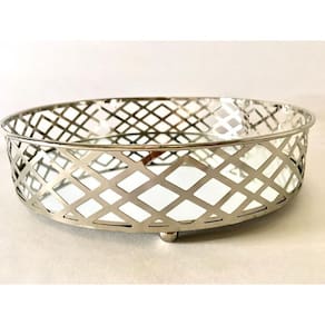 Contém 1 Bandeja Redonda Prata espelhada Diâmetro 20,5 x Altura 5cm Cor : Prata Tamanho: Diâmetro 20,5cm x Altura 5cm Material : Metal e espelho A bandeja é uma peça muito prática e útil para ter em casa, podendo ser Utilizado para decorar ou para servir. Uma ótima opção é a bandeja, que se encaixa em qualquer cenário. Com essa linda, moderna e delicada bandeja Redonda Prata espelhada com detalhes vazados você deixará Ainda mais bonito, delicado e charmoso seu lavabo, banheiro, quarto, sala, escritório ou hall. Você vai deixar seu ambiente mais charmoso e delicado Atenção: Limpar as peças com pano limpo e seco, não molhar Não acompanha enfeites decorativos. Cuidados: Limpar com pano seco e não passar produtos químicos e abrasivos. Atenção: Podem conter fotos com outras peças decorativas, como sugestão de uso e decoração, vendidas separadamente ou somente ilustrativa.