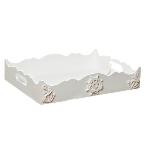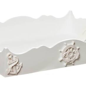 Organizese com essa bandeja confeccionada, especialmente, para levar praticidade e versatilidade para as mamães e com muito estilo. Afinal toda a magia da ambientação se manifesta através desses toques decorativos, que não podemos abrir mão Dados Técnicos Bandeja em madeira MDF, pintura laqueada e decoração em resina branca. Medidas Largura: 26 cm Comprimento: 35 cm Altura: 7 cm