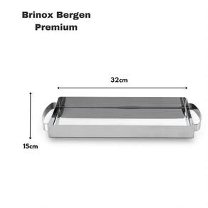 Principais Diferenciais: Resistência e Praticidade: Fabricada em aço inoxidável de alta qualidade, a Bandeja Bergen Premium é duradoura e fácil de limpar, ideal para sua casa, escritório ou eventos.Design Elegante: Possui alças em aço inox para transporte seguro e sofisticado. Seu design minimalista e atemporal combina com qualquer decoração.Versatilidade: Perfeita para servir xícaras, copos e taças, organizar o espaço do café ou decorar ambientes com elegância.Benefícios do Aço Inoxidável: Durabilidade e Sustentabilidade: Resistente à corrosão e oxidação, a bandeja é 100% reciclável ao final do ciclo, contribuindo para a sustentabilidade ambiental.Fácil Higienização: Limpeza simples com pano úmido ou álcool, mantendo o brilho clássico do aço inoxidável.Materiais de Alta Qualidade: Aço Inoxidável Premium: Garante resistência e aparência sofisticada, com brilho duradouro e acabamento de alto padrão.Fabricada no Brasil: Produzida com fontes de energia 100% renováveis, reforçando o compromisso com a sustentabilidade.Especificações Técnicas: Dimensões: 32 cm de comprimento e 15 cm de largura.Alças de Transporte: Facilitam o manuseio seguro e elegante.Instruções de Uso e Limpeza: Limpeza Fácil: Use pano úmido ou álcool, evite produtos abrasivos para preservar o acabamento.Brilho Duradouro: Utilize polidores de aço inox da Brinox para manter a aparência brilhante.Versatilidade e Sofisticação: A Bandeja 32 cm da Linha Bergen Premium é ideal para diversas situações: Decoração Elegante: Crie um espaço sofisticado para bebidas ou arranjos de flores.Serviço Prático: Perfeita para servir em festas, eventos ou no dia a dia, com segurança e estilo.Uso Interno e Externo: Resistente à oxidação, é adequada para ambientes internos e externos.