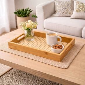 A Bandeja Retangular em Bambu com Palha Trançada Premium é uma peça versátil, elegante e funcional, ideal para quem busca praticidade aliada a um design sofisticado.