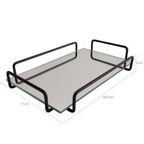 Garantia: 90 Dias / Peso: 645g / Cores: Preto fosco e espelhado / Ref: 31473 Dimensões: 26cm (C) x 17cm (L) x 4cm (A) Dimensões da área de uso: 24,5cm (C) x 15cm (L) x 2,5cm (A) Espessura: 5mm Formato: Retangular. Observação: Itens decorativos em cima da bandeja não acompanham o produto.